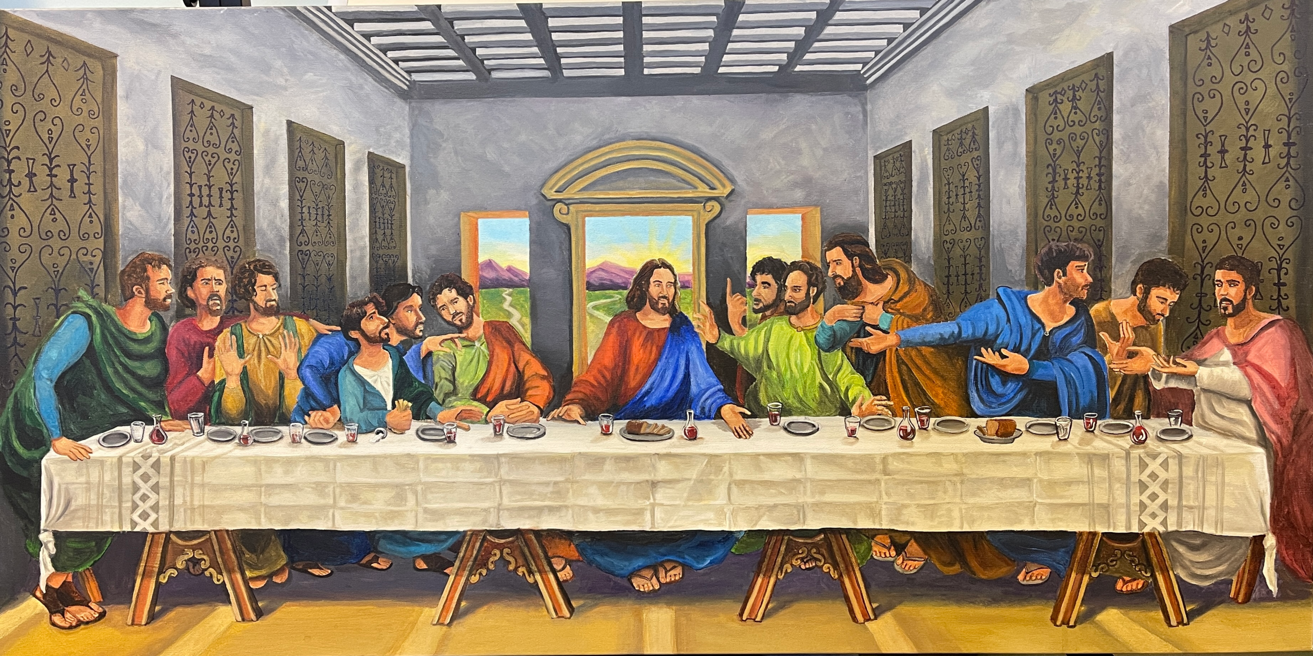 24″ x 48″ painting commission inspired by Leonardo da Vinci’s The Last Supper and the TV program The Chosen.