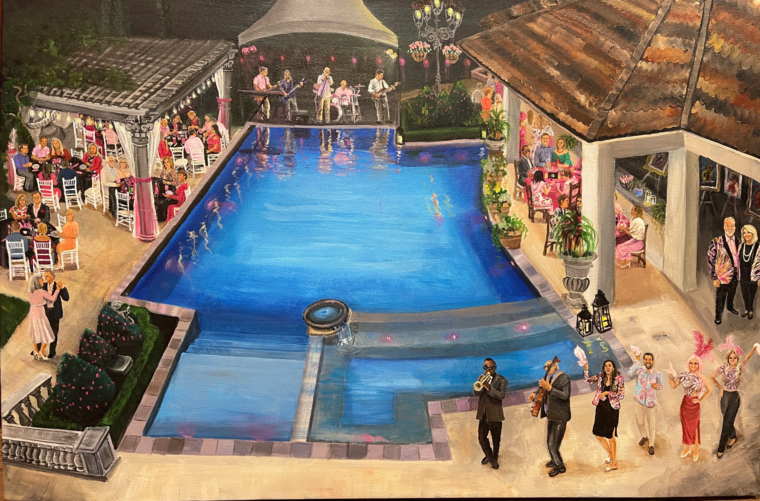 24″ x 36″ semi-impressionistic deluxe party live painting at the annual Gala for Breast Cancer Awareness.