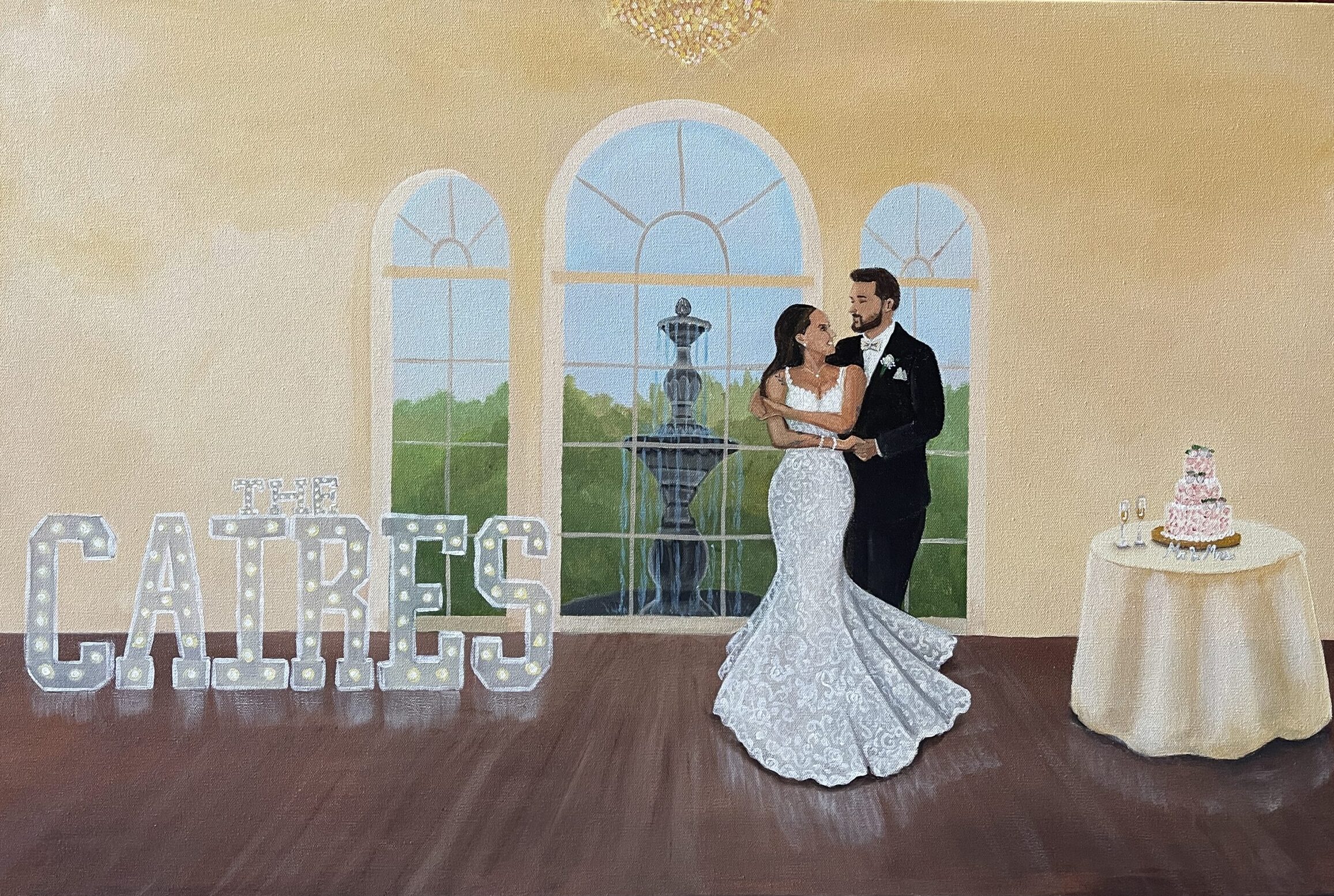 24″ x 36″ semi-impressionistic newlywed package wedding painting at the Greystone.