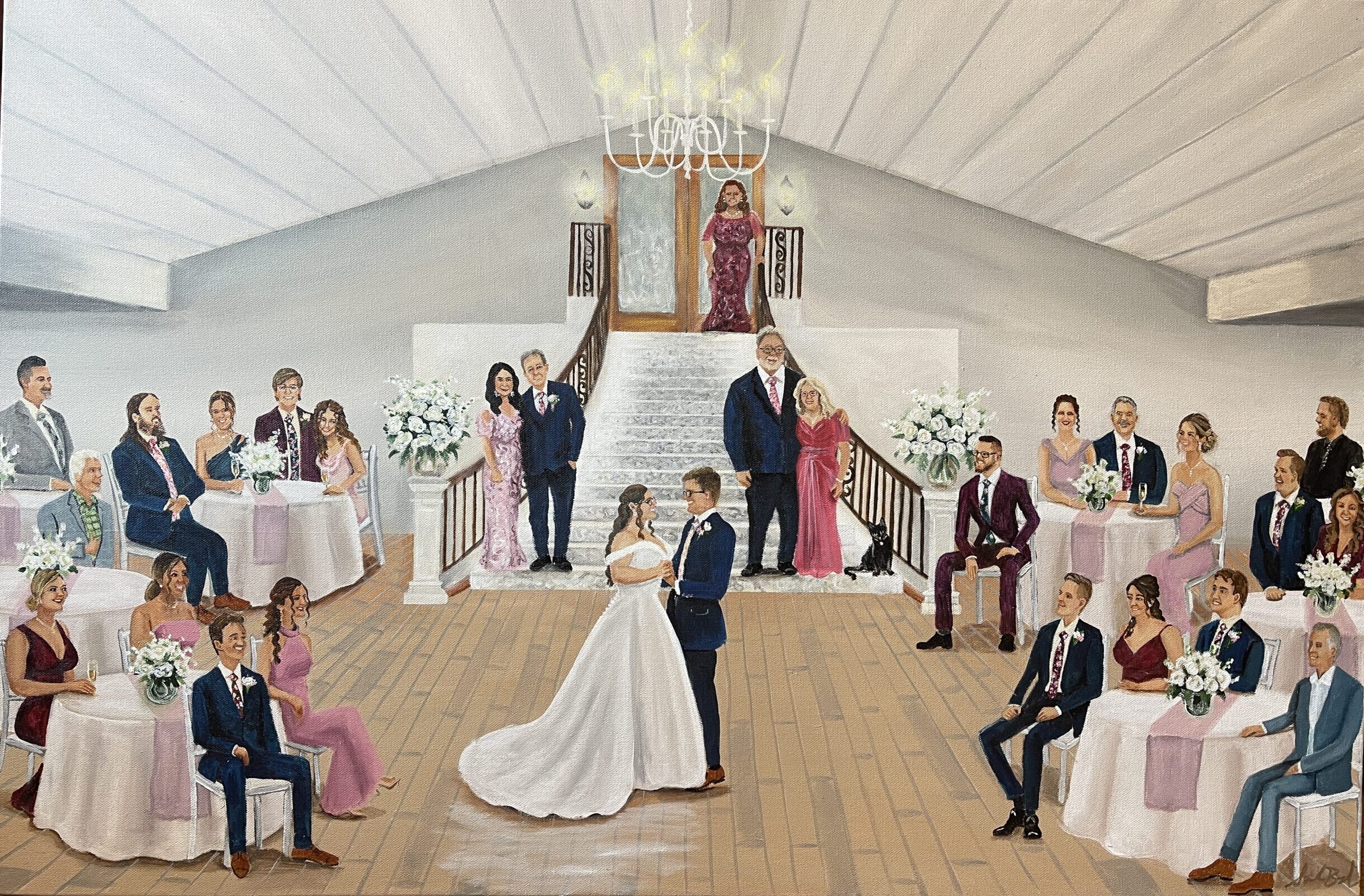 24″ x 36″ semi-impressionistic deluxe party wedding painting at the Oaks.