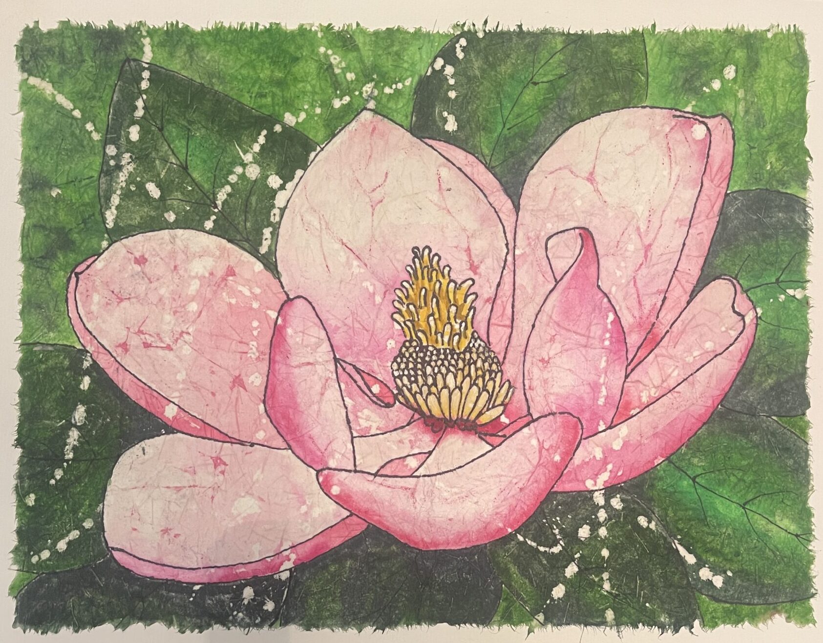 11″ x 14″ watercolor batik on Kinwashi paper.