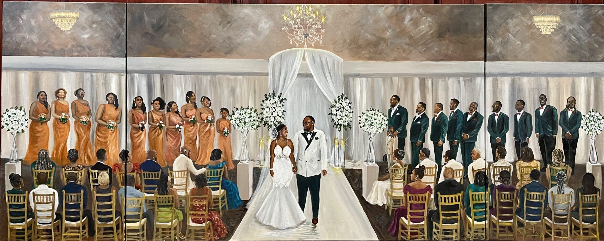 24″ x 36″ canvas with two additional 12″ x 24″ canvases on either side. Semi-impressionistic modified deluxe masterpiece at Club XIV.